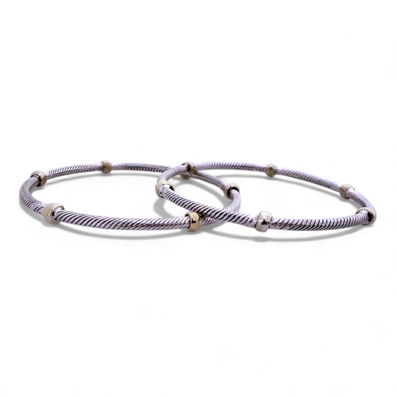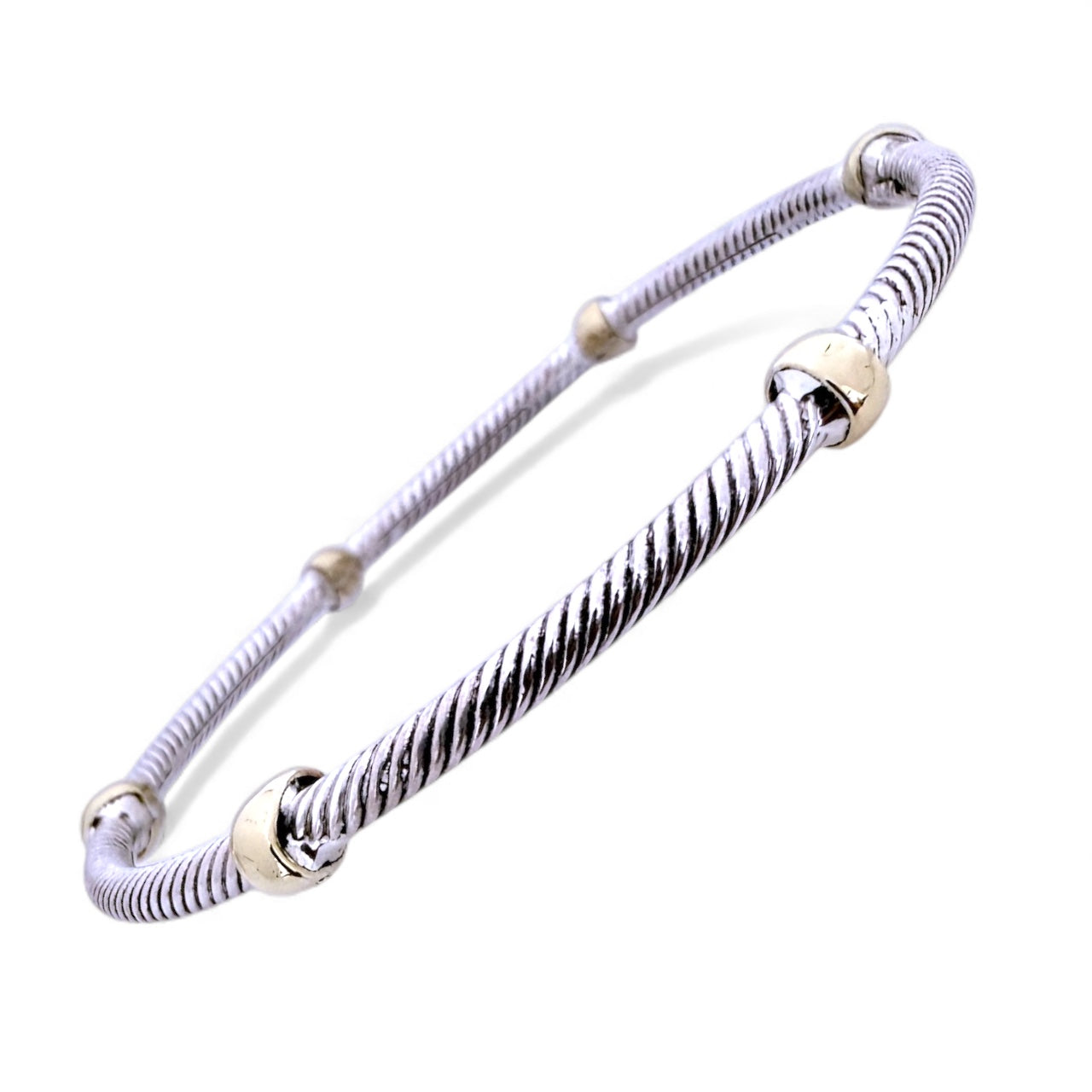 Oxidised Twist Bangle with Gold Beads – 925 Silver, 22g Daily & Party Wear