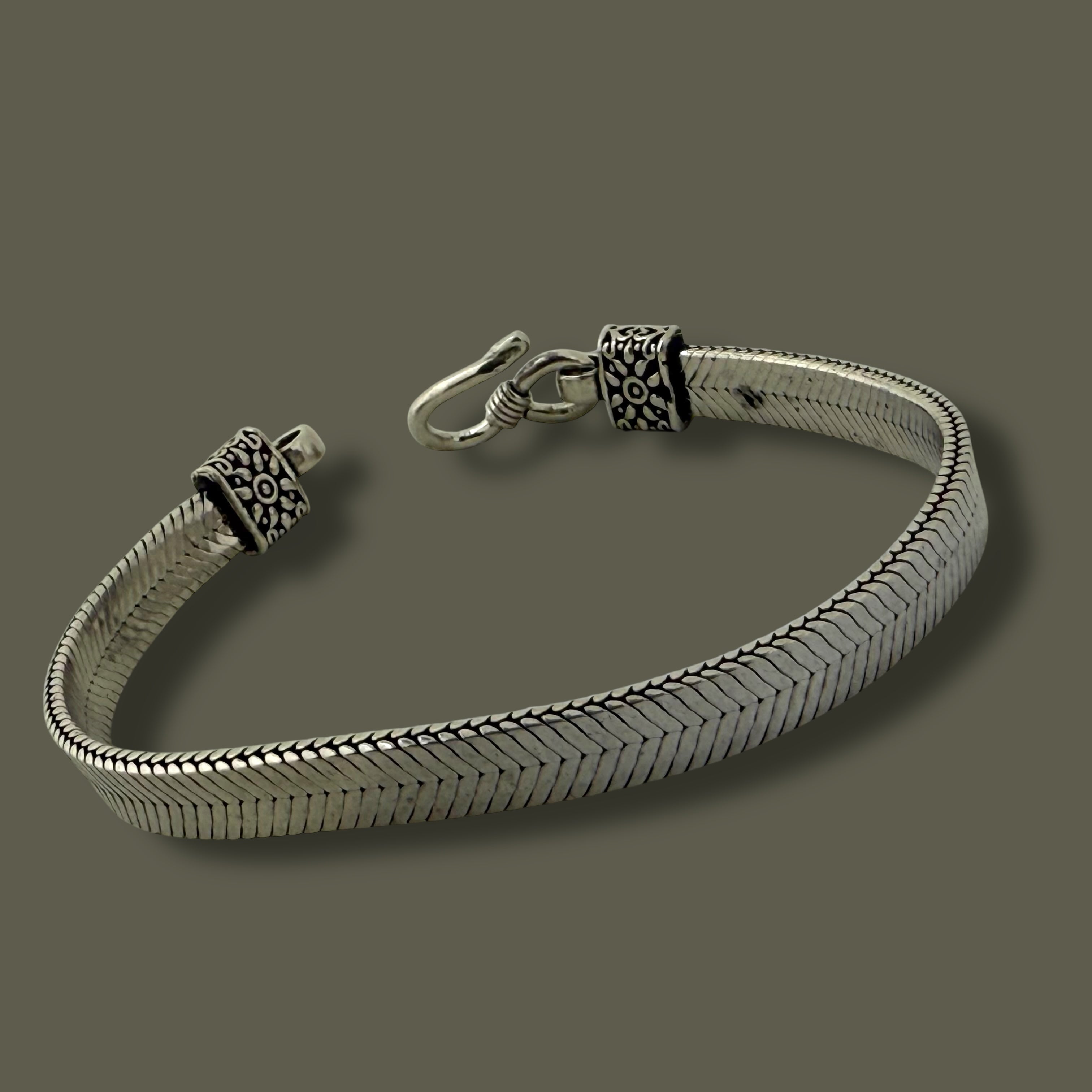 Make a refined style statement with this sleek men’s bracelet, handcrafted in pure 925 sterling silver and weighing 23g. Featuring an elegant herringbone pattern and secure antique-style clasp, this bracelet offers superior craftsmanship and a contemporary look. Perfect for daily wear, formal occasions, or as a thoughtful gift, it brings understated sophistication to any outfit. Each piece ships in an exclusive Rudra Craft gift box with a jewelry care card.