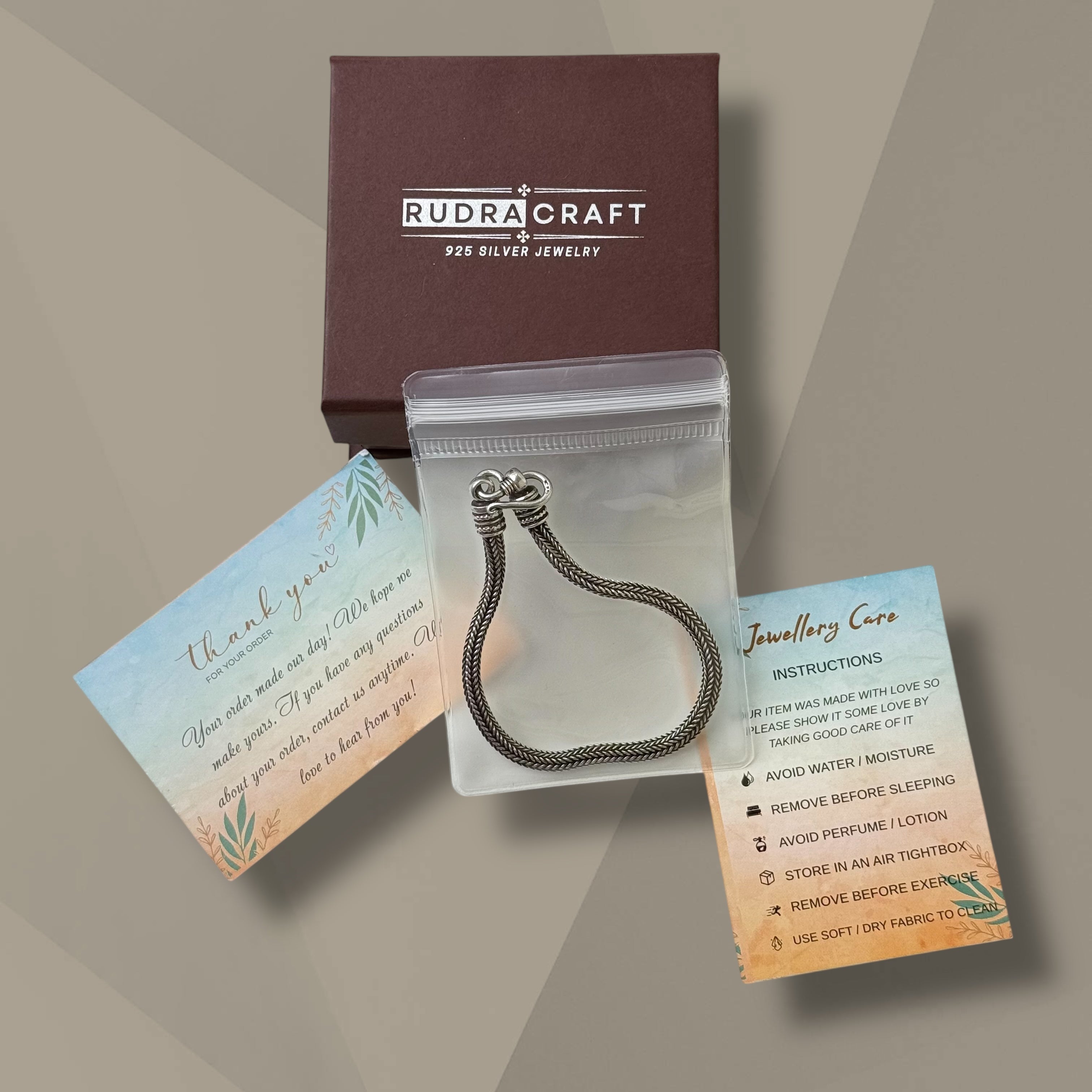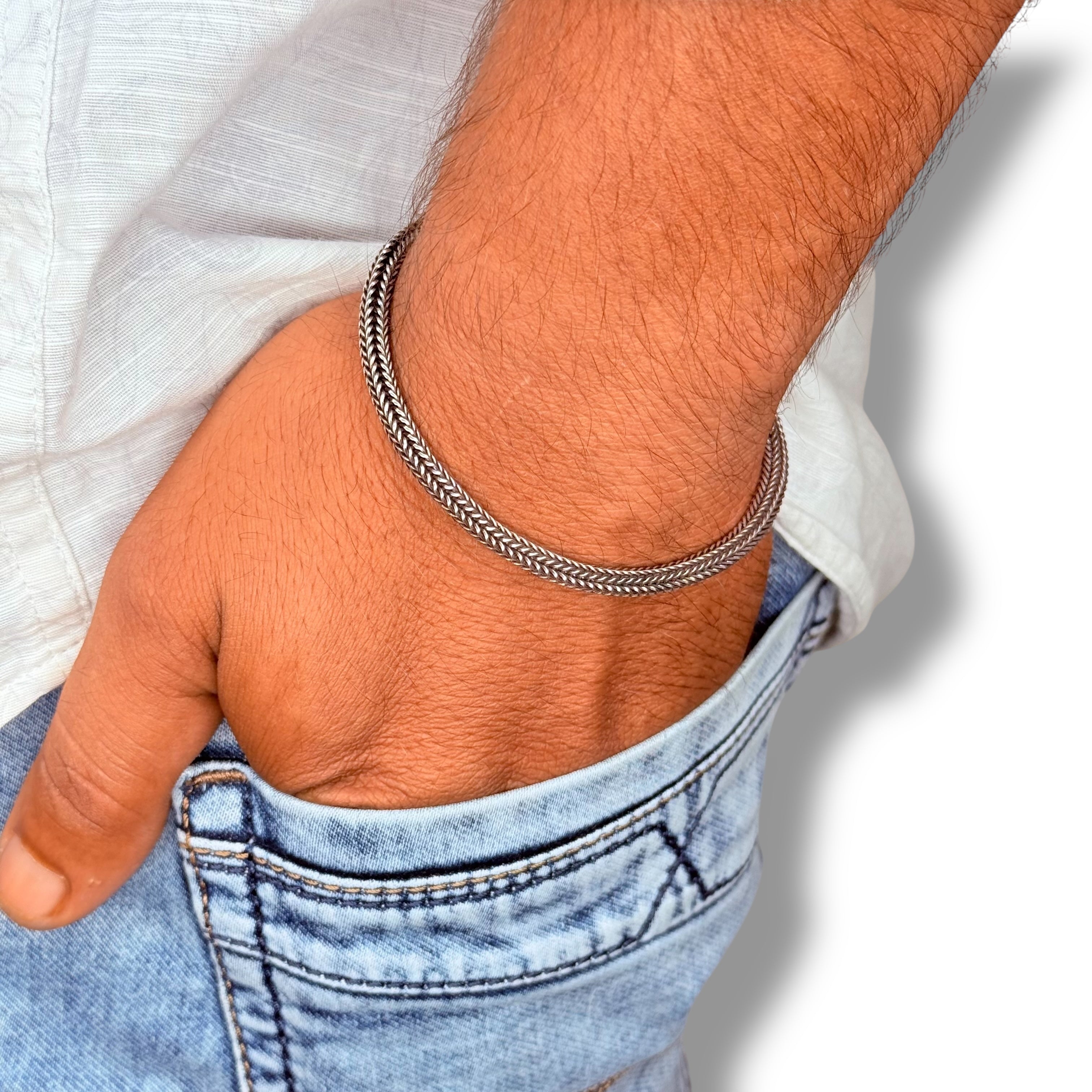 Make a refined style statement with this classic chevron men’s bracelet, crafted in pure 925 sterling silver and weighing 16g. Featuring a sleek chevron weave design with subtle oxidised accents and a secure ethnic hook clasp, this bracelet brings together timeless charm and everyday comfort. Ideal for work, daily wear, or special occasions, it delivers understated elegance and lasting durability. Each piece ships in an exclusive Rudra Craft gift box with a jewelry care card.