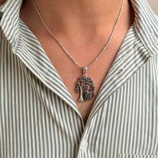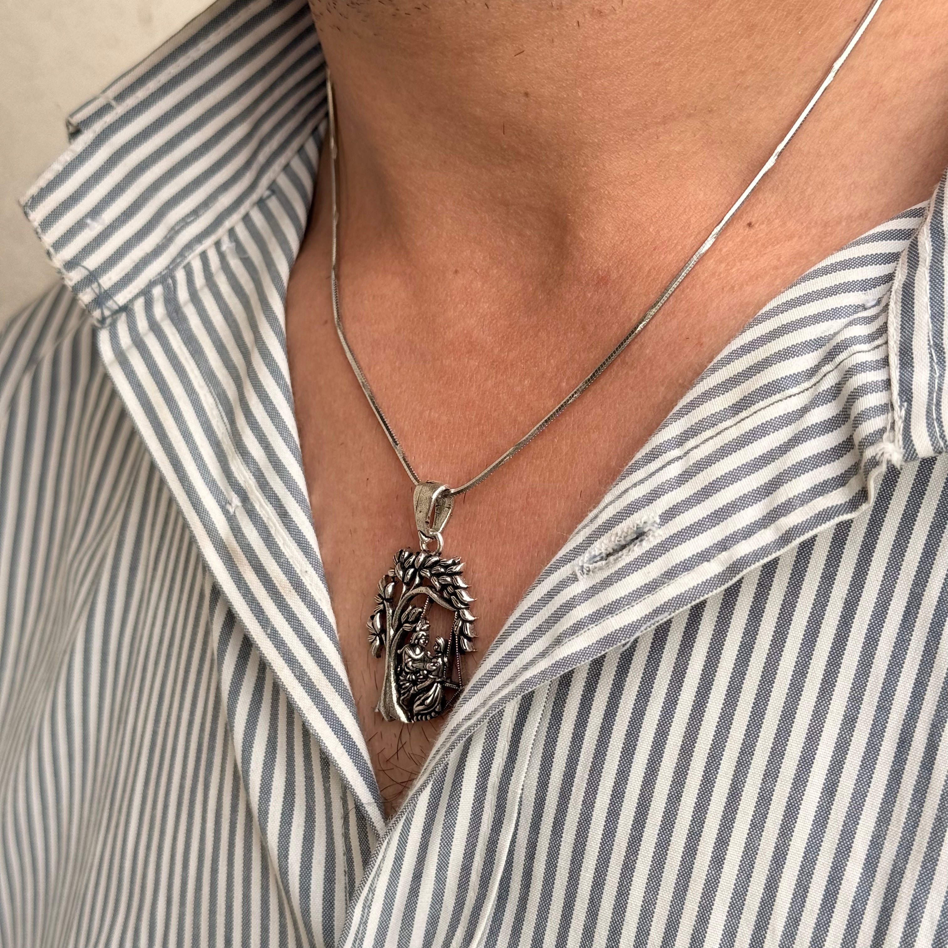 Radha Krishna Jhula Pendant – 925 Sterling Silver, Oxidized, 25×40 mm | Rudra Craft